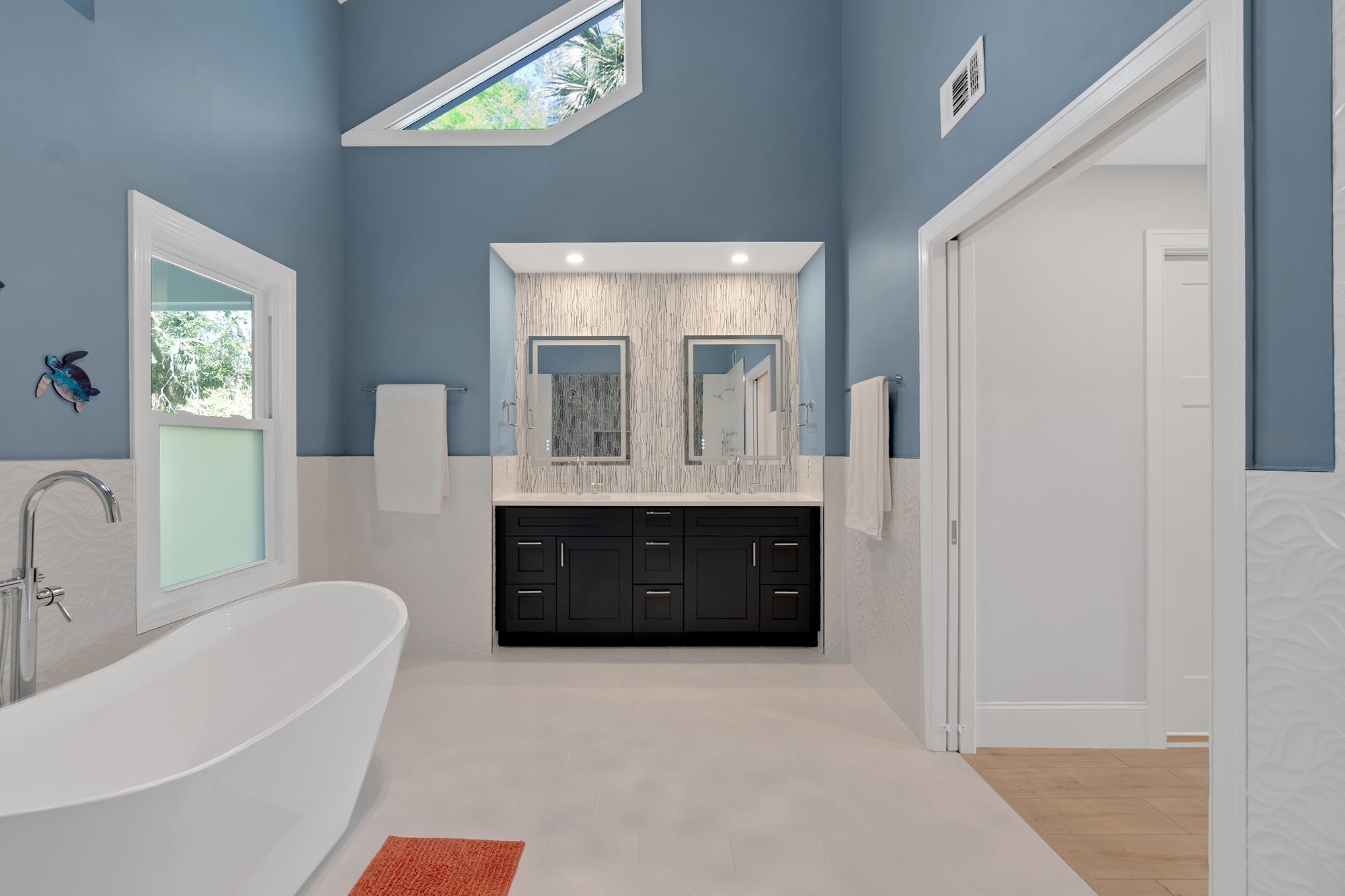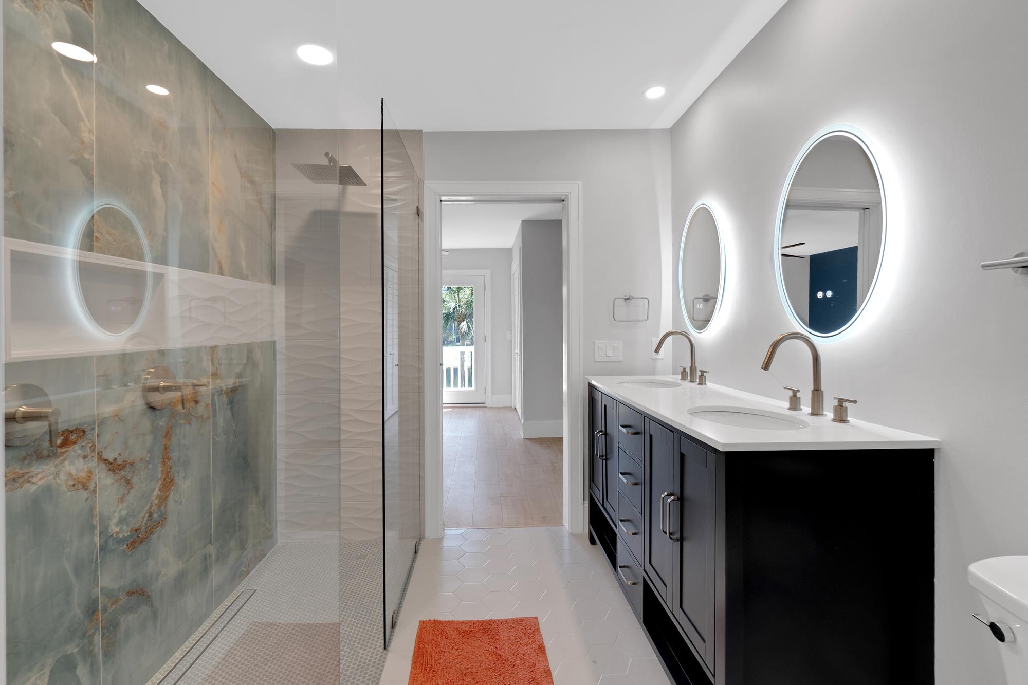We recently completed an extensive whole home renovation in the serene Shipyard Plantation of Hilton Head, SC, breathing new life into a classic property with thoughtful, modern updates. This renovation transformed the entire layout and design to optimize both space and views. Central to the redesign, the kitchen was strategically moved to the heart of the home, featuring a walk-in pantry, a large island, and a sleek wine cooler, ideal for entertaining and daily living. Enhancing the connection with the home's lush surroundings, two nine-foot accordion style doors were installed in the dining room and newly located living room, offering expansive views of the picturesque lagoon and well-manicured backyard. The living room now enjoys a prime location at the back of the house and boasts a cozy built-in bench with an electric fireplace, creating a perfect blend of comfort and modernity. The master bathroom was completely overhauled to include a zero-entry shower, a standalone tub, and a spacious vanity, transforming it into a luxurious retreat. Additionally, all bedrooms were upgraded with new flooring, fresh paint, updated electrical fixtures, and efficient closet organizers. A new spiral staircase adds a dramatic touch and practical access to the third floor, which now hosts a charming bunk room and a newly added bathroom. This project not only revitalizes the house but also pays homage to the rich history and natural beauty of Shipyard Plantation.