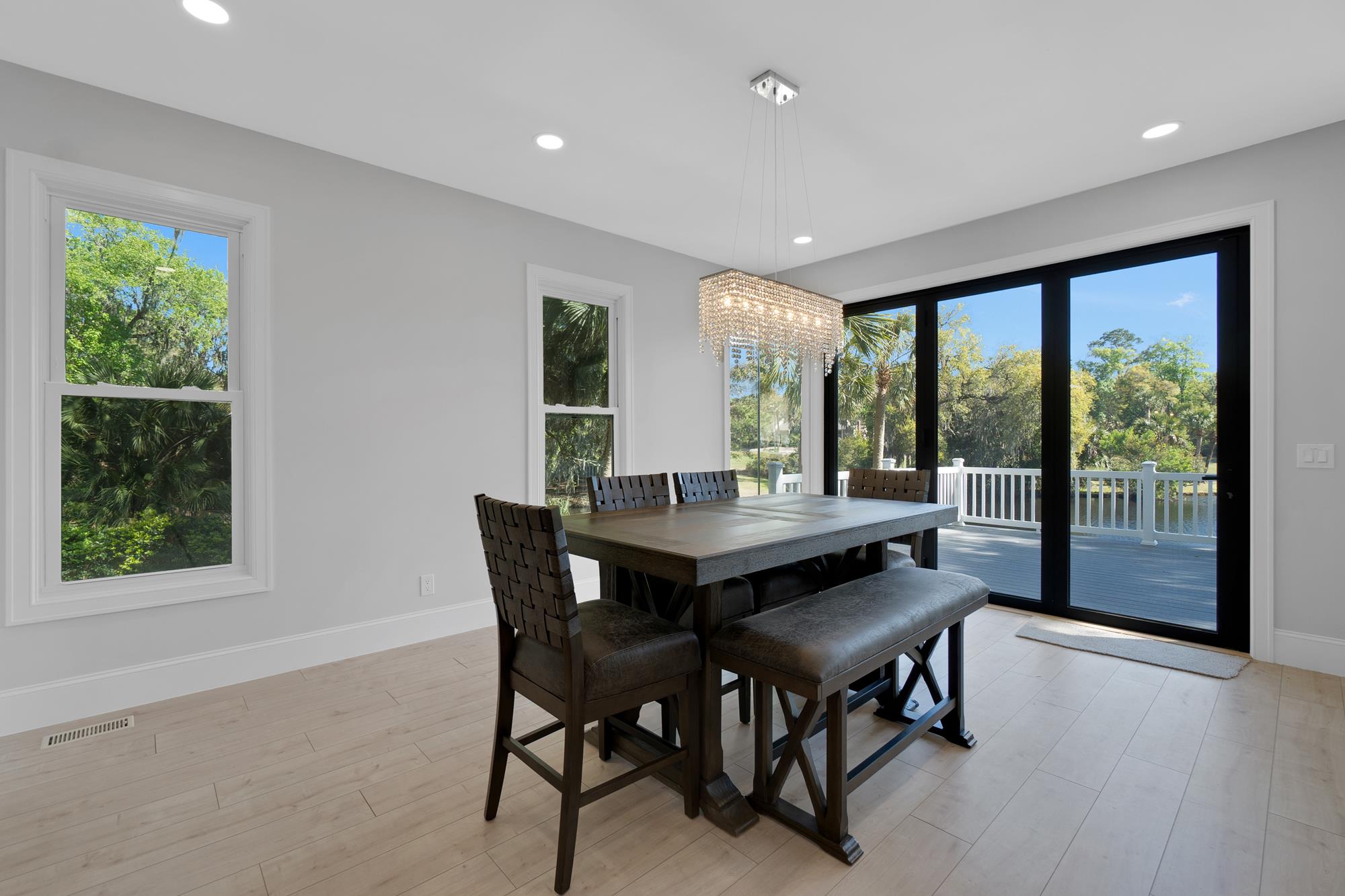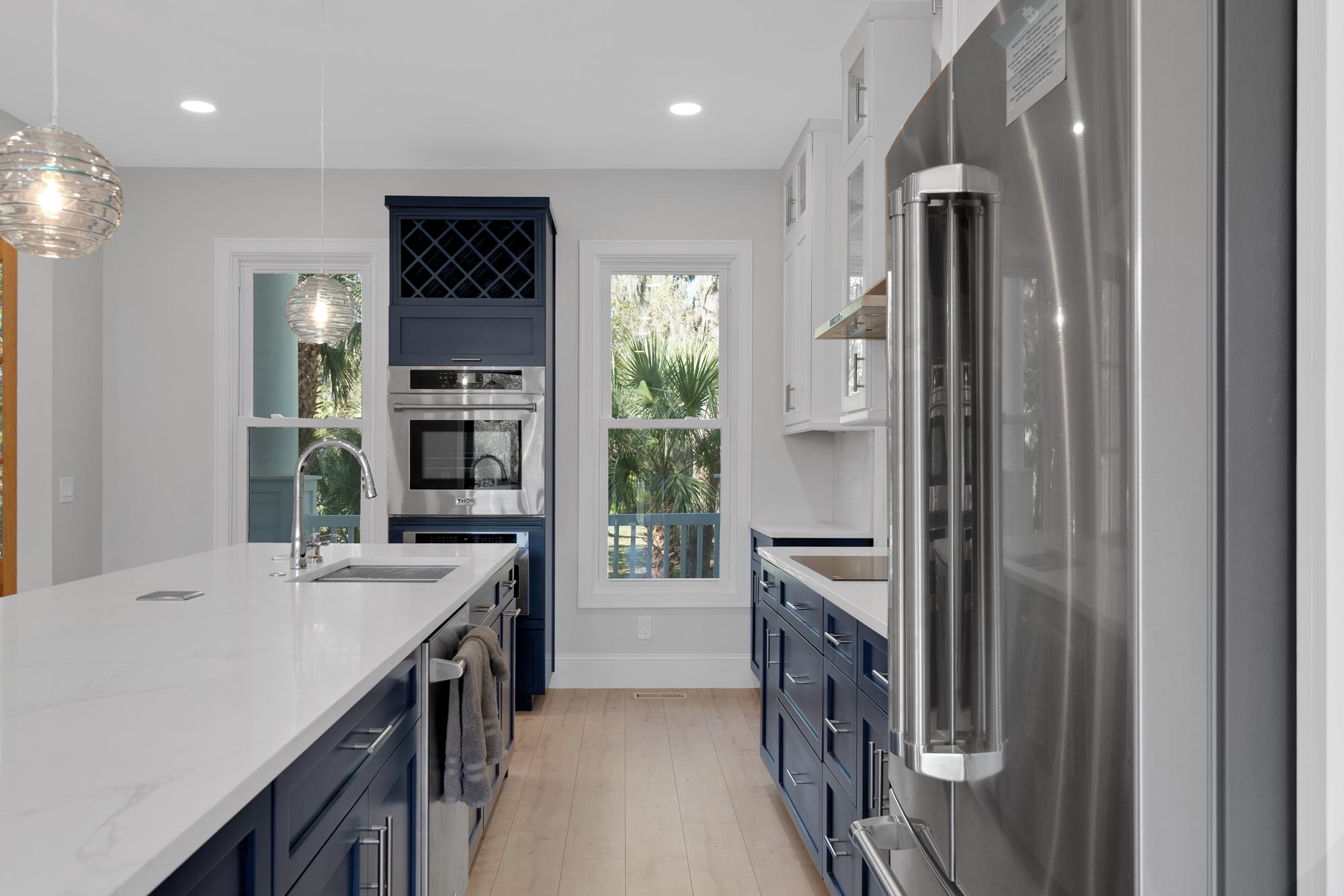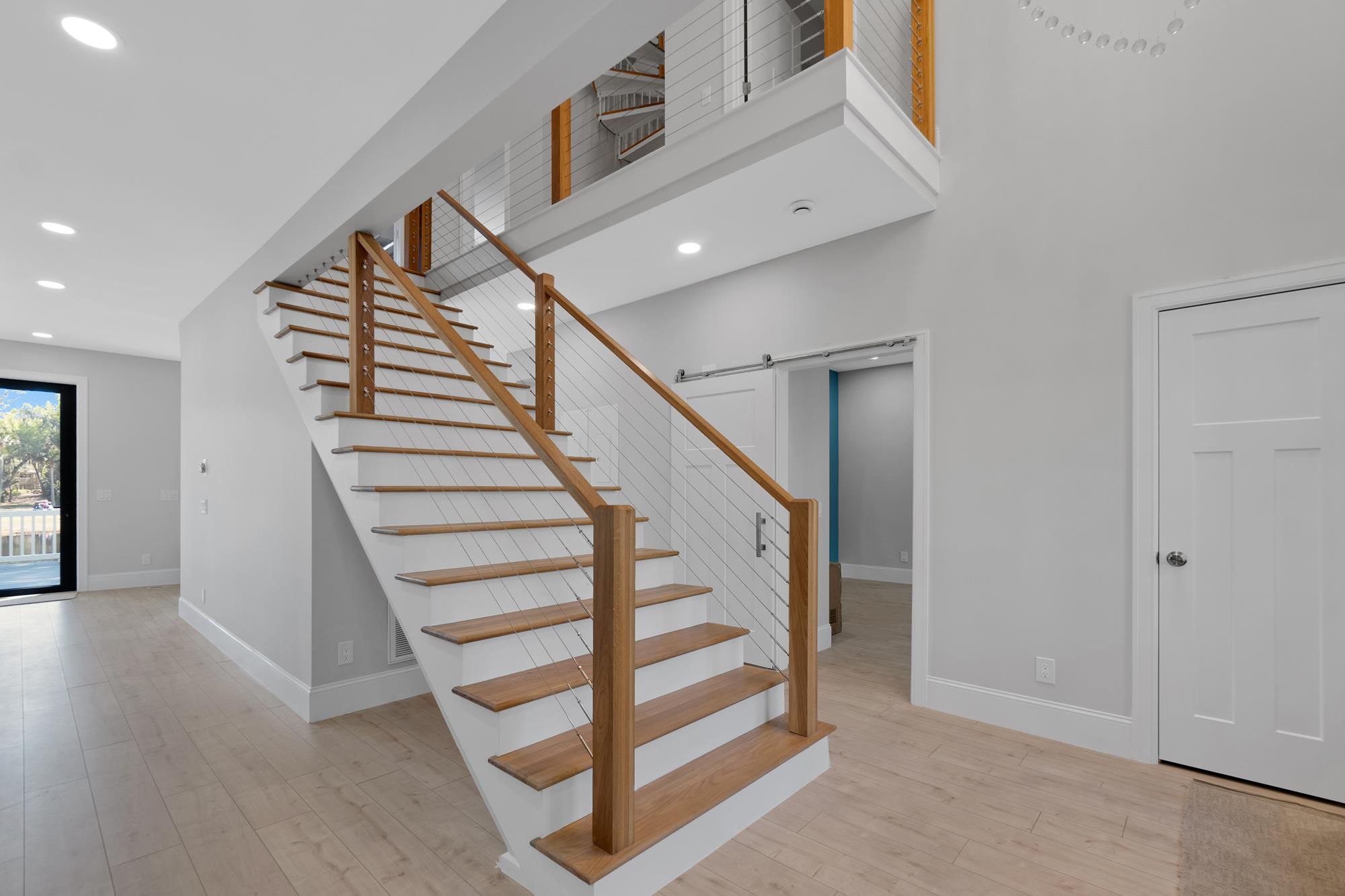 We recently completed an extensive whole home renovation in the serene Shipyard Plantation of Hilton Head, SC, breathing new life into a classic property with thoughtful, modern updates. This renovation transformed the entire layout and design to optimize both space and views. Central to the redesign, the kitchen was strategically moved to the heart of the home, featuring a walk-in pantry, a large island, and a sleek wine cooler, ideal for entertaining and daily living. Enhancing the connection with the home's lush surroundings, two nine-foot accordion style doors were installed in the dining room and newly located living room, offering expansive views of the picturesque lagoon and well-manicured backyard. The living room now enjoys a prime location at the back of the house and boasts a cozy built-in bench with an electric fireplace, creating a perfect blend of comfort and modernity. The master bathroom was completely overhauled to include a zero-entry shower, a standalone tub, and a spacious vanity, transforming it into a luxurious retreat. Additionally, all bedrooms were upgraded with new flooring, fresh paint, updated electrical fixtures, and efficient closet organizers. A new spiral staircase adds a dramatic touch and practical access to the third floor, which now hosts a charming bunk room and a newly added bathroom. This project not only revitalizes the house but also pays homage to the rich history and natural beauty of Shipyard Plantation.